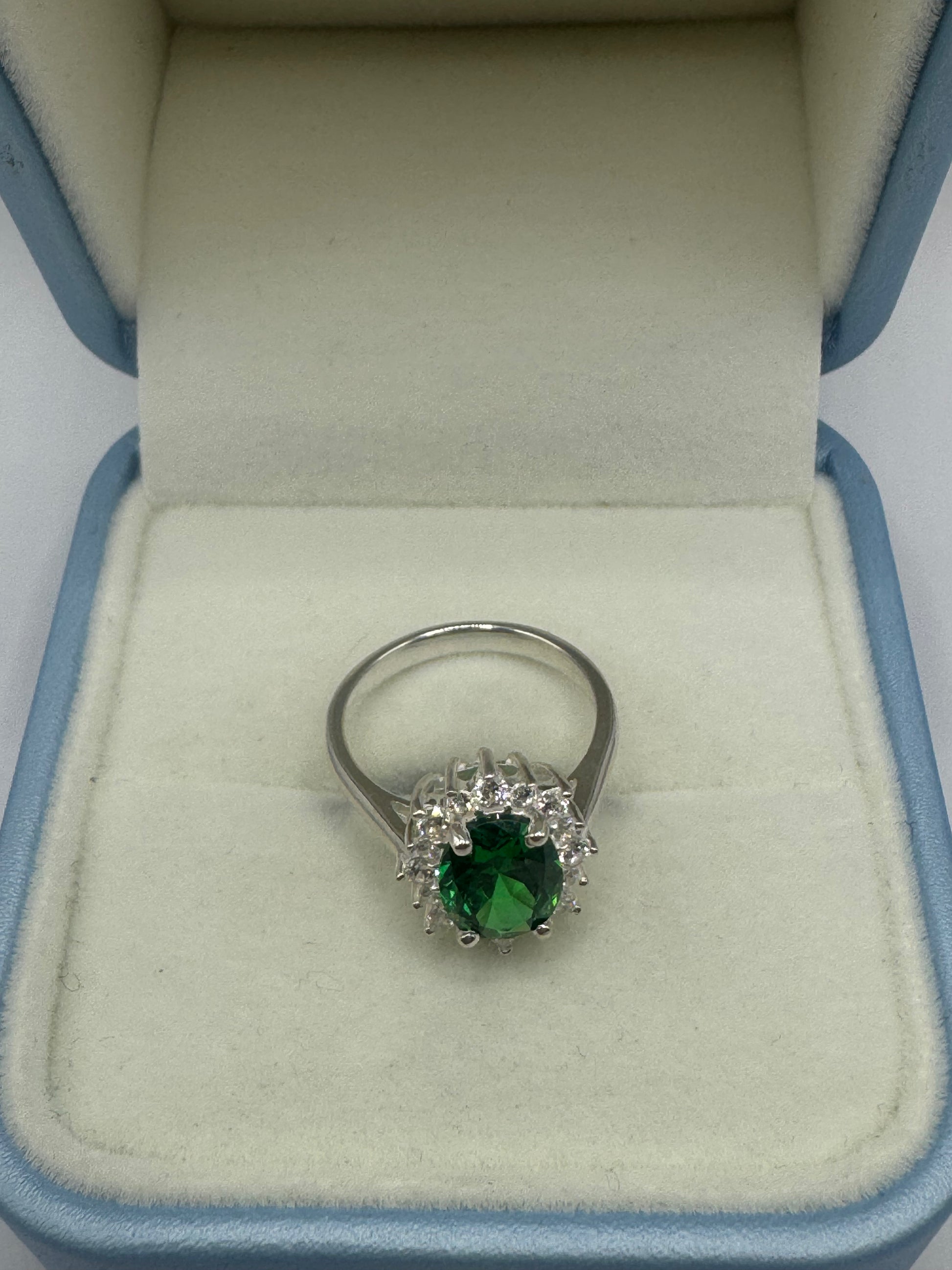 Stirling Silver Emerald & Cubic Zirconia Ring