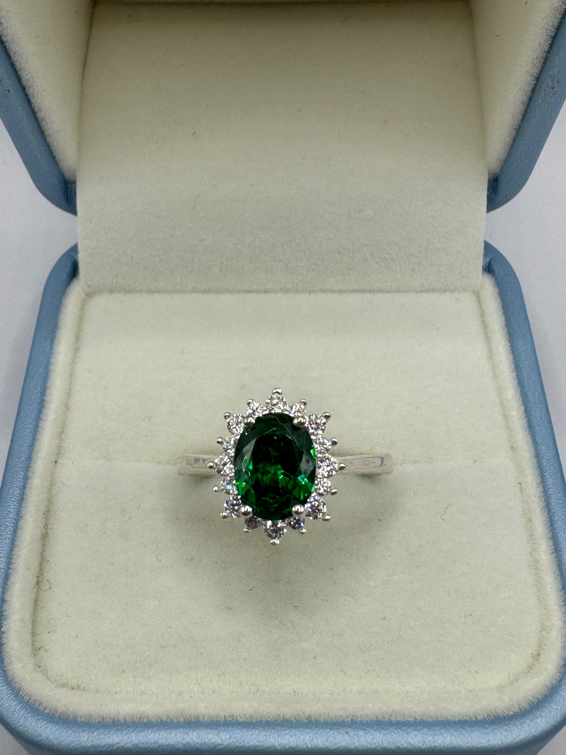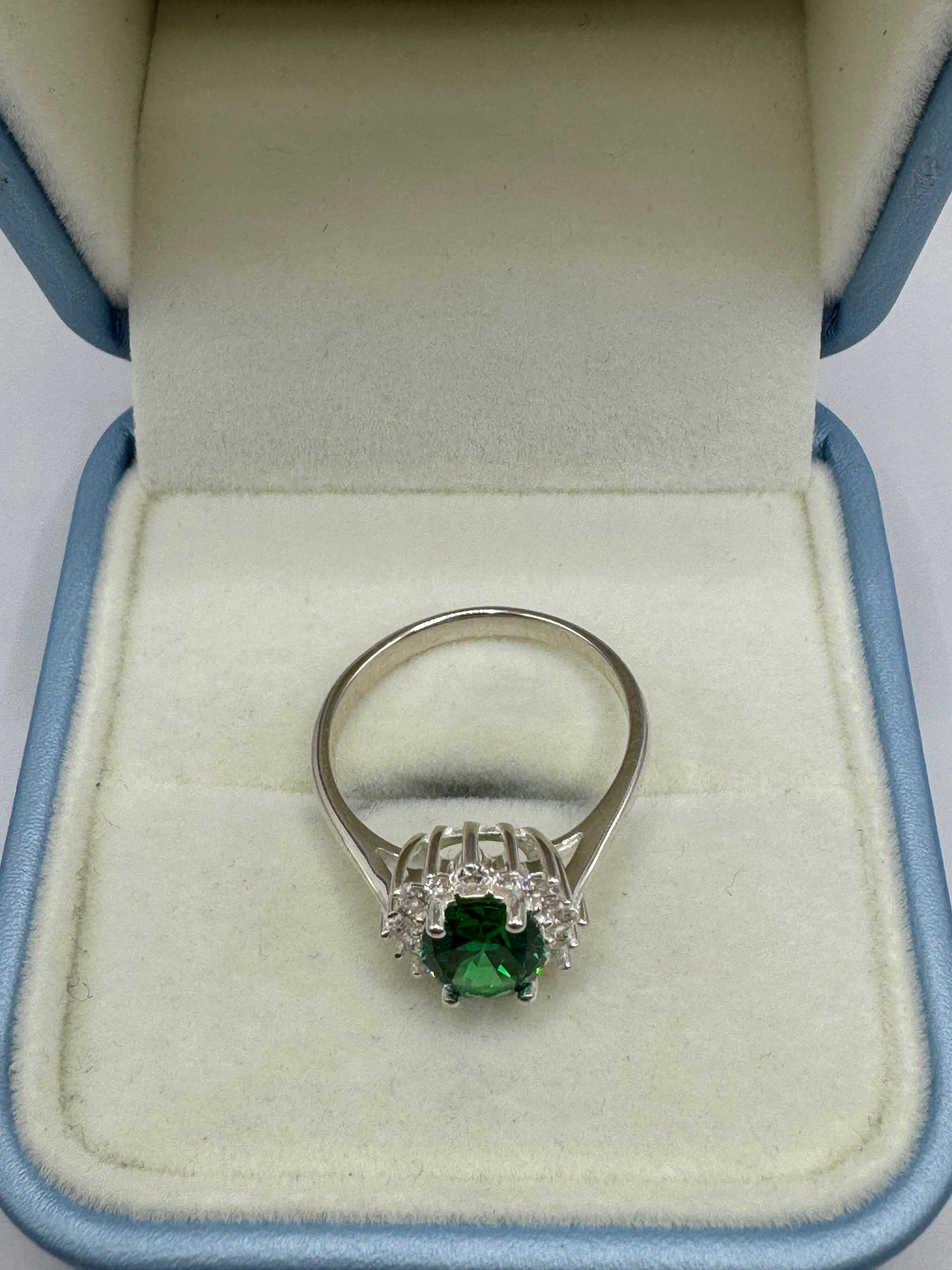 Stirling Silver Emerald & Cubic Zirconia Ring